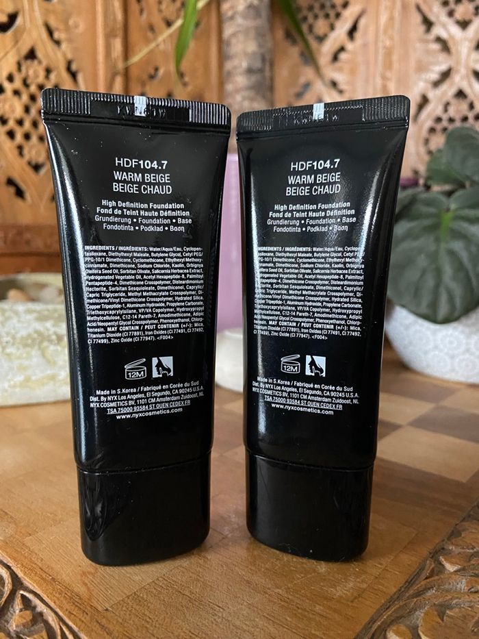 Lot de 2 fonds de teint de la marque Nyx Professionnal makeup HD studio photogenic 33,3 ml Couleur beige chaud. Neufs et scellés