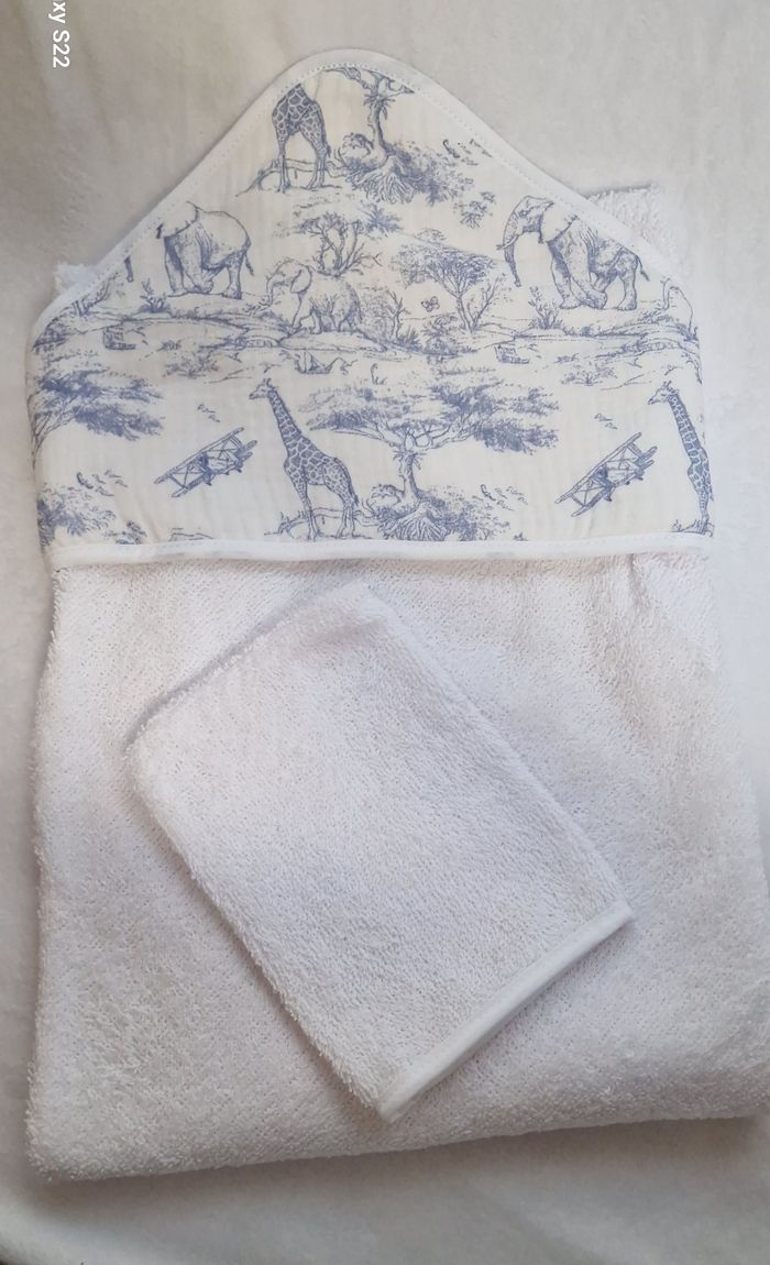 Cape de bain +gans de toilette safari bleu  - photo numéro 1
