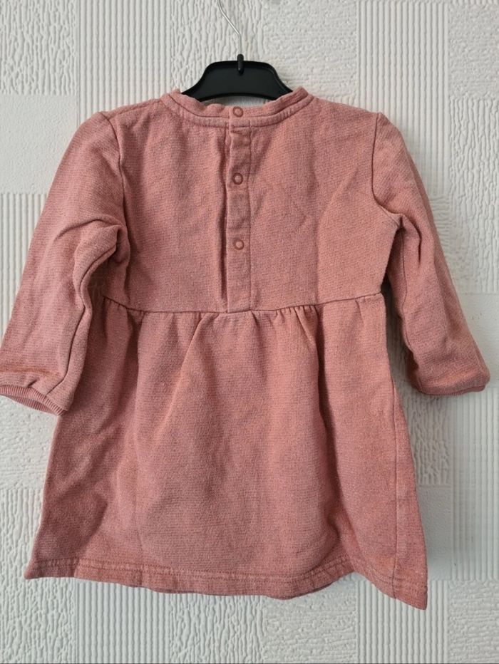 Robe manches longues en matière sweat, rose rayures dorées, pressions au dos. Très bon état, envoi soigné Kiabi 2 ans