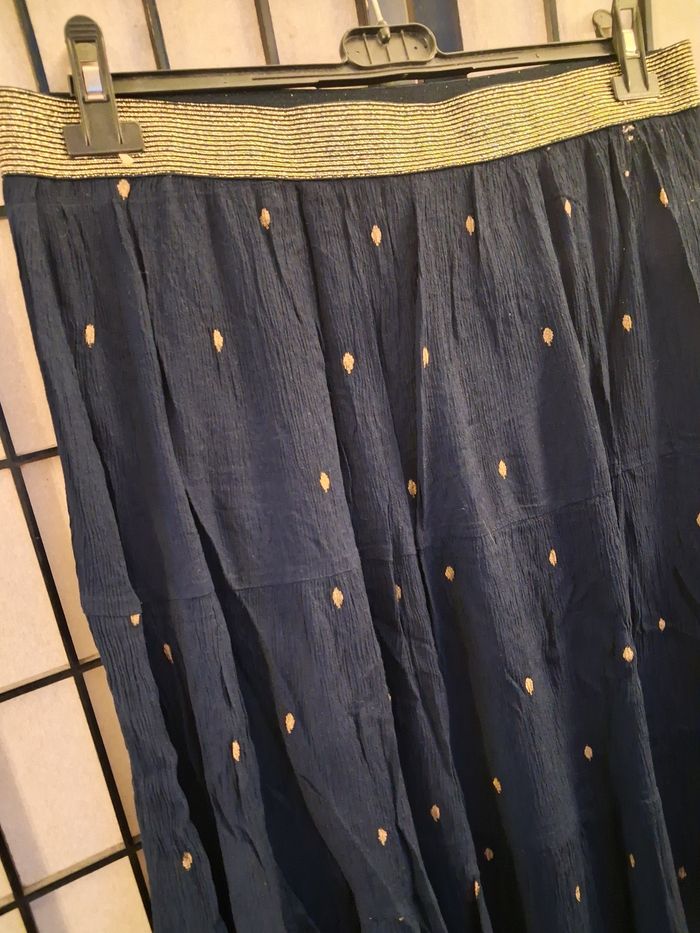 Jupe avec une doublure en bon état général De 42 cm à 66 cm avec l'élastique à la taille (voir photo) Arrive en dessous des genoux Photo du vêtement porté impossible