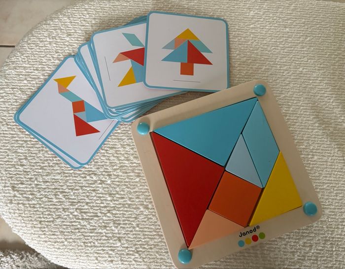 Jeu de Tangram en bois de la marque Janod Utilisé 1 fois