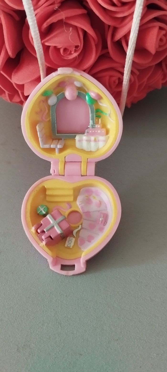 Collier Polly Pocket anniversaire Le cadeau contient un diamant Petit cadre pour ajouter une photo Manque Polly. Marque Bluebird 1992. Très bon état.