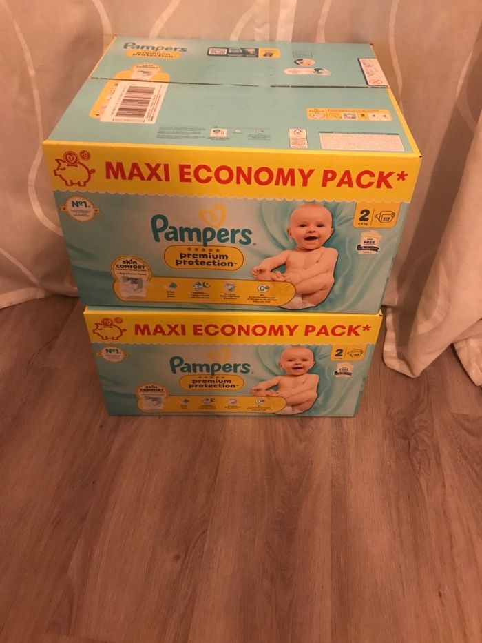 Bonjour 2 cartons de couches Pampers prenium protection taille 2 2x 117 couches