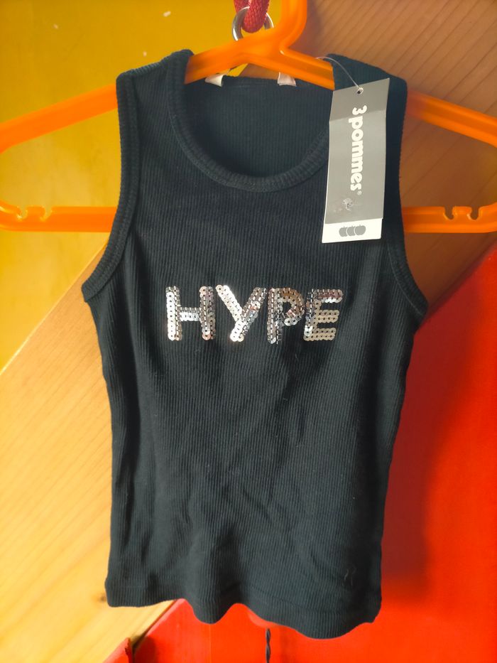Neuf avec étiquette. Marcel en coton côtelé noir avec inscription Hype en sequins argentés devant