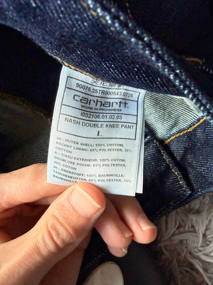 Jean Carhartt WIP Double Knee Pant Coloris Nash Blue (Rinsed) — l’un des plus recherchés Taille L État neuf, jamais porté ✨ Modèle iconique Carhartt WIP avec : • Double épaisseur aux genoux (style workwear authentique) • Toile denim épaisse et résistante • Coupe droite, fit parfait avec sneakers ou boots • Couleur Nash Blue Rinsed : facile à assortir, rendu premium C’est un des pantalons Carhartt les plus demandés actuellement, aussi bien pour les looks streetwear que workwear. 📦 Envoi rapide et soigné 💬 N’hésite pas si tu as une question