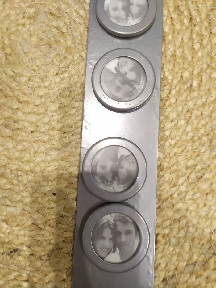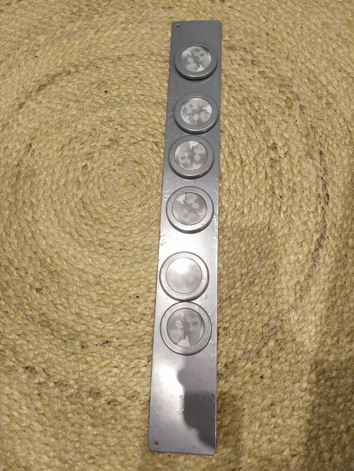 Vends porte photos, en métal, aimanté, pouvant accueillir 6 petits portraits, en bon état général. Idéal pour accrocher. Jamais servi. N'hésitez pas à regarder notre dressing pour regrouper vos achats et réduire les frais de port. Nombreuses tailles encore disponibles en 4,5,6,8 et 10 ans pour fille. Mais également pour garçon en taille 4,5,6,8, 10 et 12 ans. Nombreux jeux, jeux vintage et livres pour enfants également disponibles !