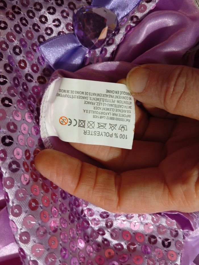 Polyester. Sequins. Déguisement. Taille estimée. Je pourrai mesurer.