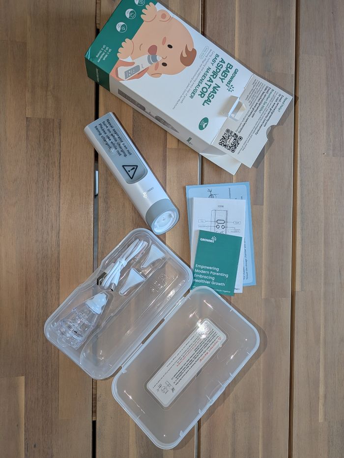 Aspirateur nasal Grownsy 3 embouts différents dont un pour nouveau né Musique et lumière pour apaiser bébé Jamais servi, ouvert uniquement pour les photos. Prix internet 38€ Emballage soigné et envoi rapide 📦 Prix 30€