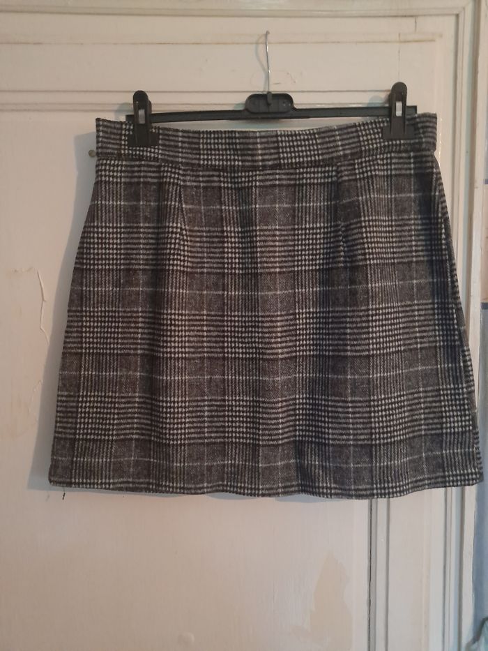 Jupe d'hiver, grise à carreaux, taille L - photo numéro 1