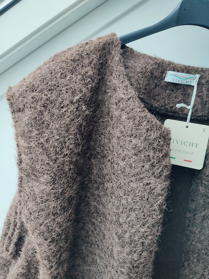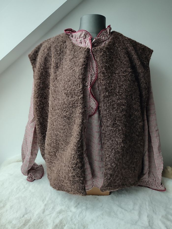 Veste sans manches couleur marron foncé N eu ve avec 🏷️ Très douce et chaude, bonne qualité made in italy Effet laine bouillie,avec poches. TU Grande Taille convient du 42 au 48 Aisselle à aisselle 66 cm Épaule 56 cm Longueur 60 cm 100% polyester
