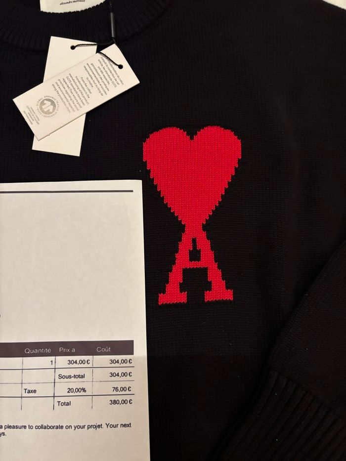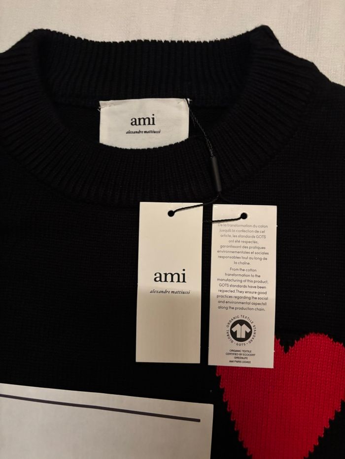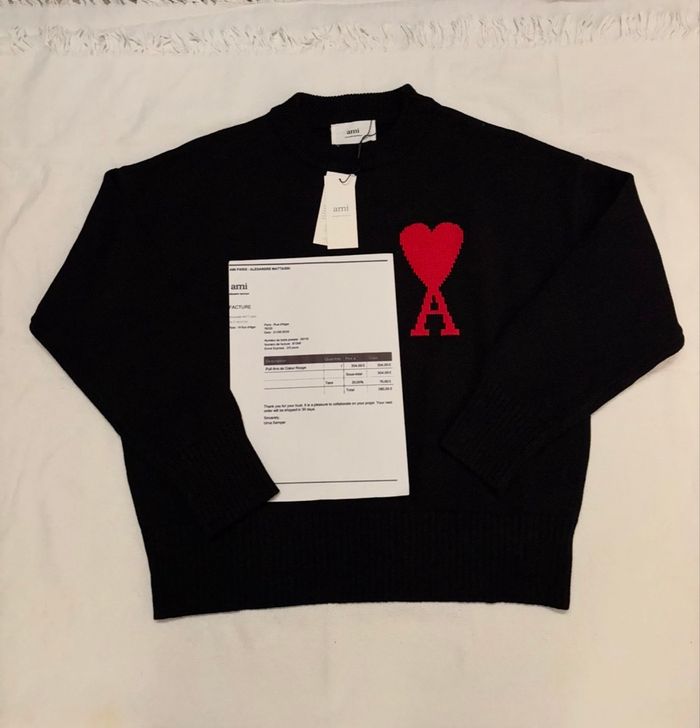 Pull Ami Noir de cœur rouge - Taille M , neuf . Je le vends car il ne me va pas . Envoie sous 24h accompagné de sa facture