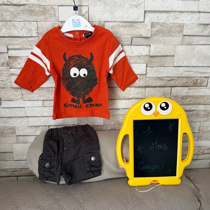 Ensemble short et maillot longues manches Marque Kiabi Très bon état, non porter par mon fils car bébé d’hiver Taille 1 mois #taille1mois #vetementgarçon #tresbonetat #kiabi #ensemblebebe #ensemblegarcon