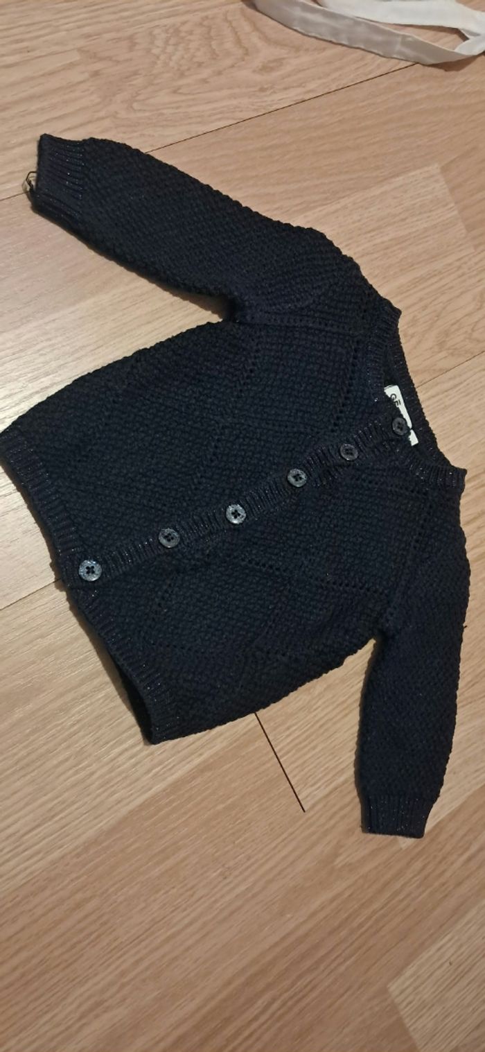 Gilet fille 3 mois Gémo Bleu marine bordure pailletées Bon état