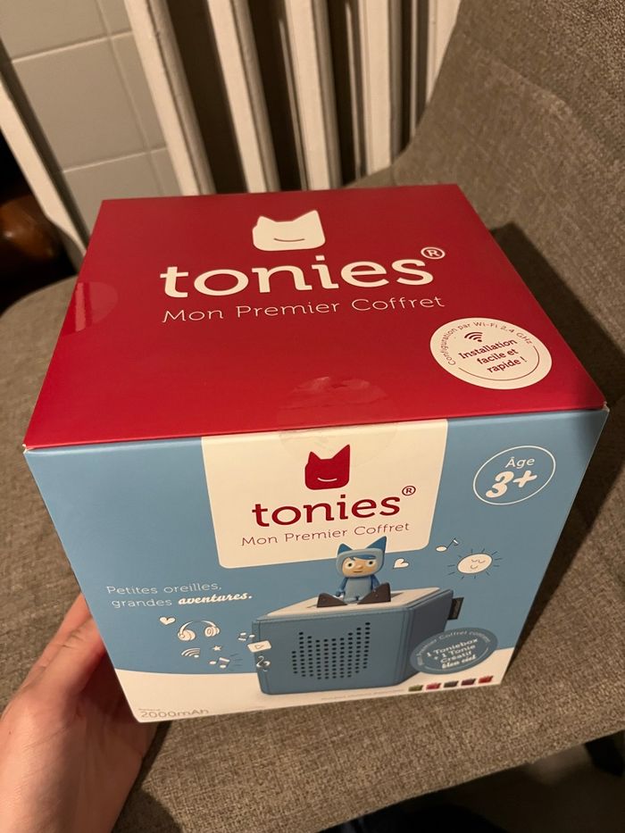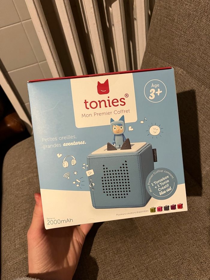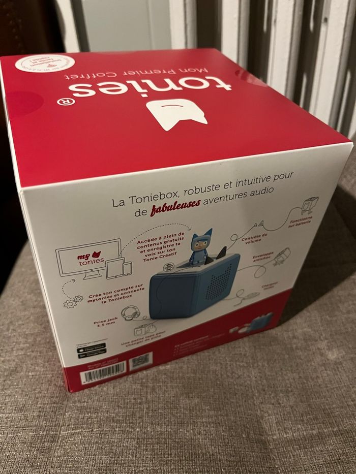 Toniebox v1 bleu claire neuve Encore sous scellé N’a jamais été ouverte Je l’ai reçue en remplacement de mon ancienne toniebox v1 mais j’ai depuis acheté la v2 Avec son tonie créatif La garantie se lance dès l’installation de la box, et comme elle a été commandée via le site officiel en cas de problème tout est géré par toniebox et le SAV est très arrangeant et rapide