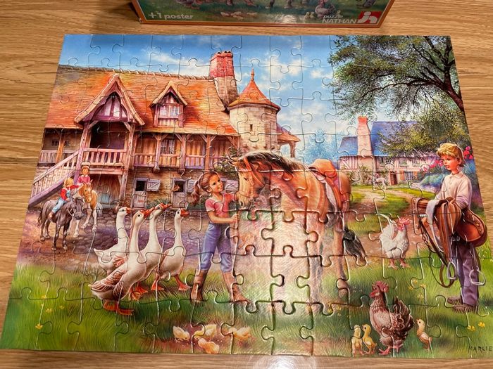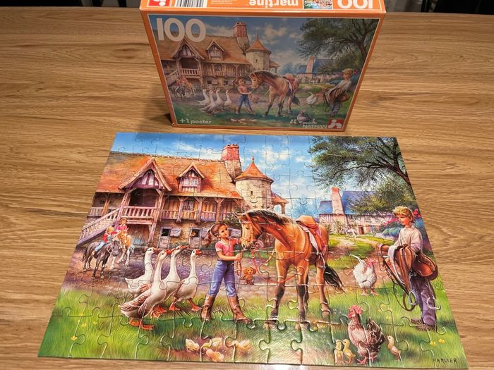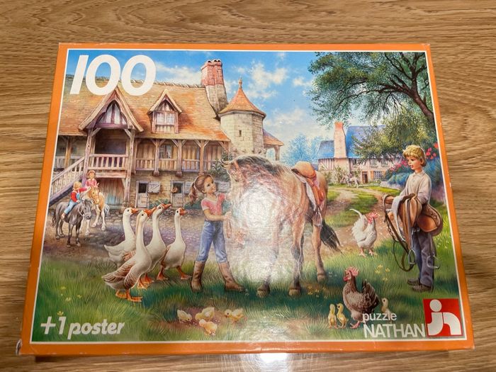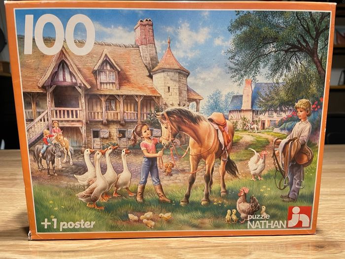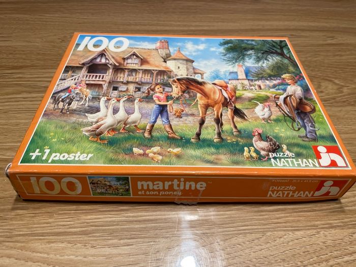 Puzzle Martine et son poney Nathan 100 pièces Manque le poster 1984 Coin de la boîte scotché