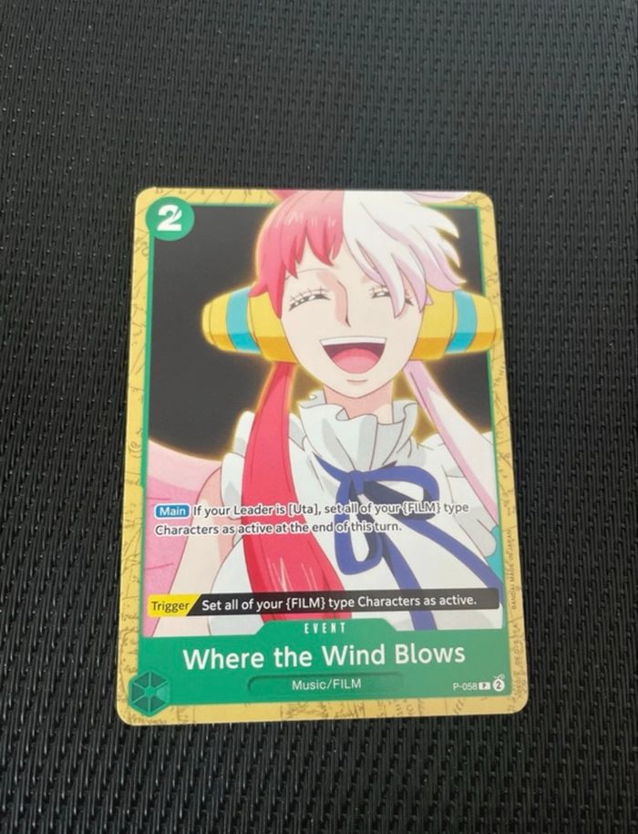 Attention : commandes à partir de 5€. Carte Where the wind blows P-058 Uta anglais One Piece card game.