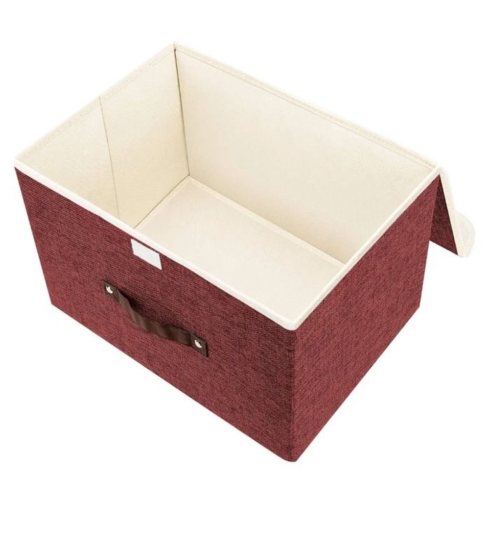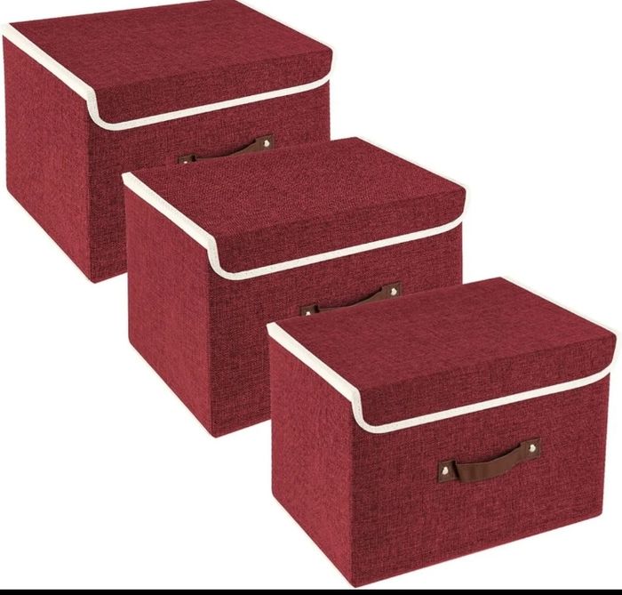 Lot de 3 Boites de Rangement en Tissu avec Couvercle 38x25x25 cm Coloris Vin Rouge