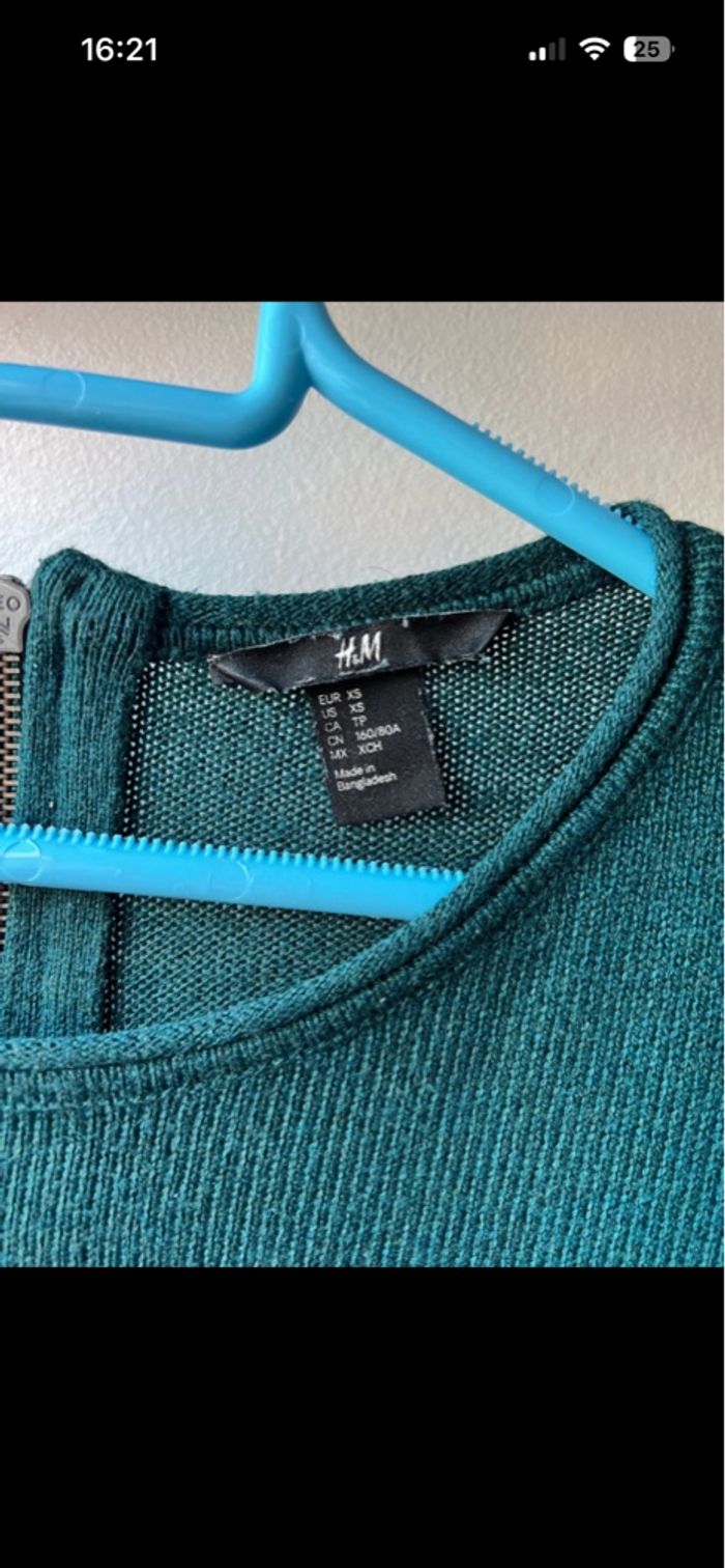 Pull H&M vert sapin taille XS / 34 col rond  14% laine  - photo numéro 4