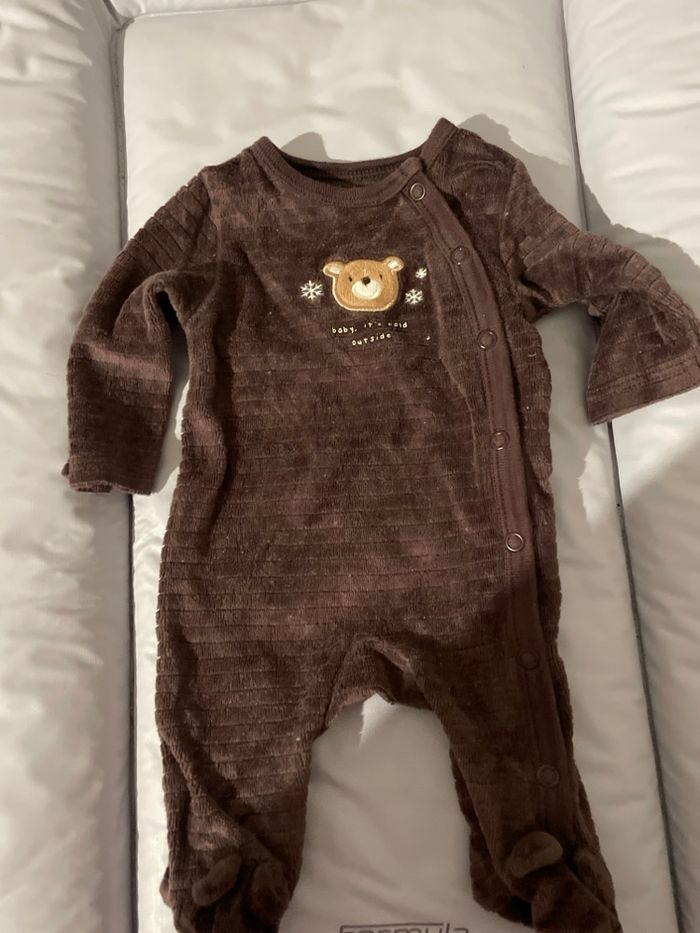Pyjama marron avec tête d’ours taille 1 mois de chez Kiabi