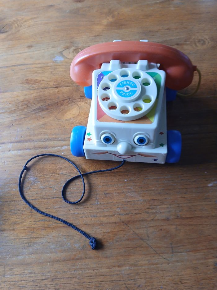 Téléphone à tirer de la marque Fisher Price. Quelques traces d'usure, bon état.