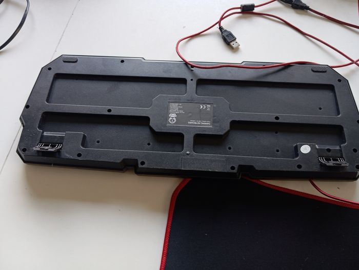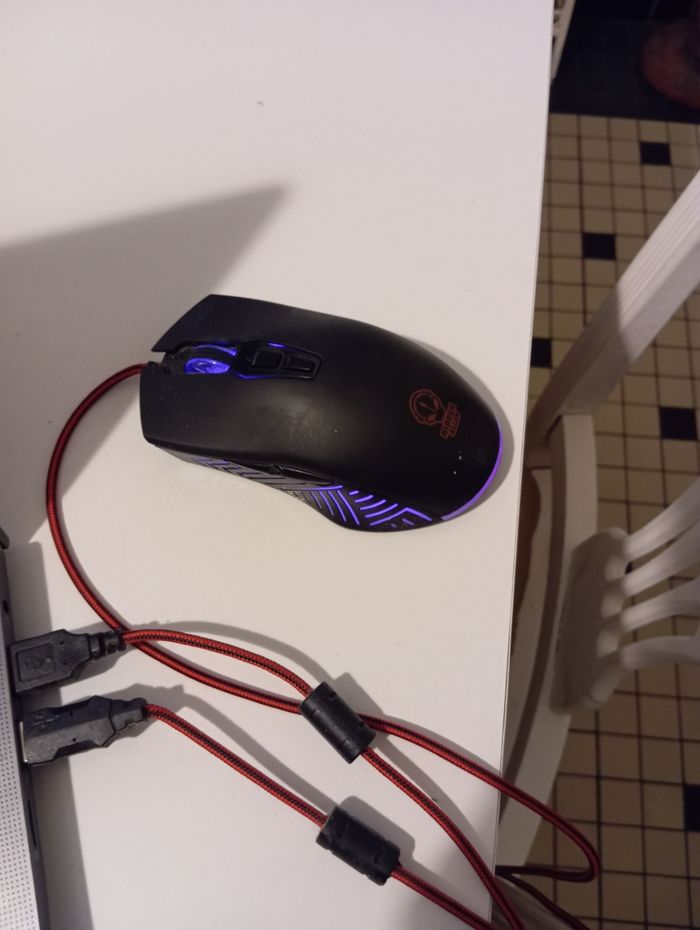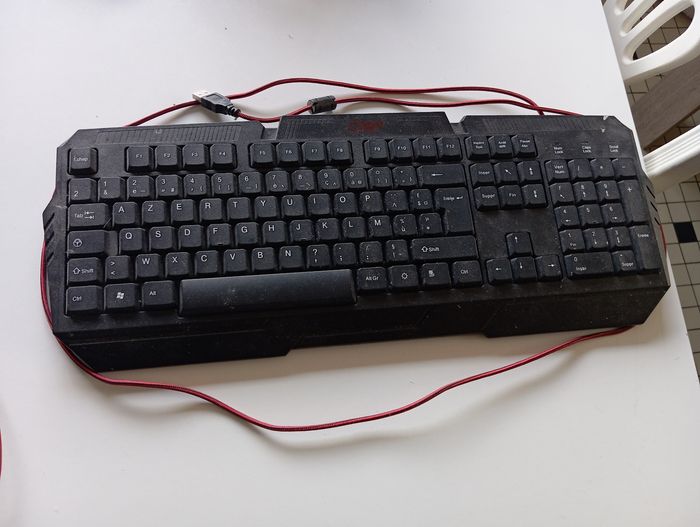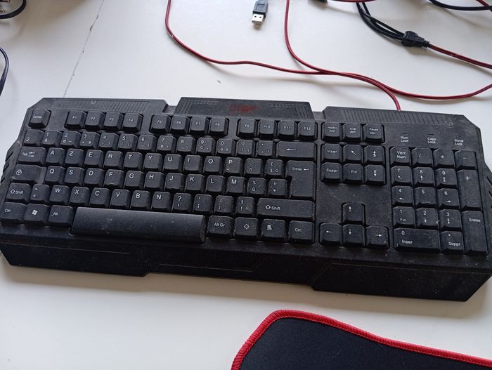 un clavier + souris + tapis Le clavier et la souris s'illumine Le clavier à plat ou surélevé grâce à des petits pieds qui se rentrent dessous si pas la nécessité Comme neuf jamais utilisé