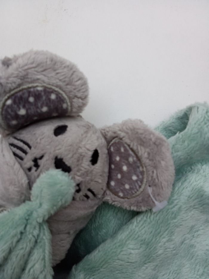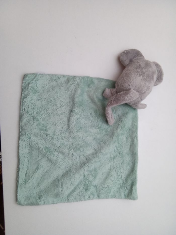 Doudou mouchoir garçon souris grise tenant son mouchoir vert eau - photo numéro 5