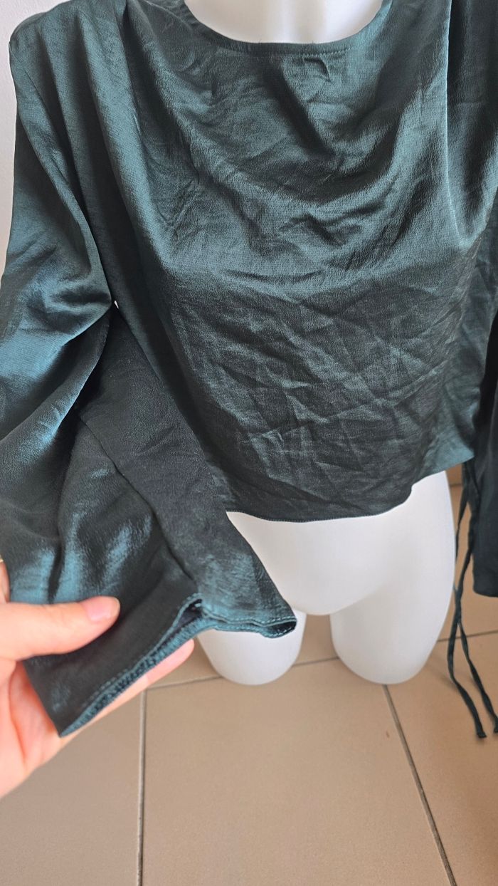 Blouse courte Kaki Satinée Épaulettes Nœud sur lequel côtés pour ajuster #blouse #primark #blouseprimark