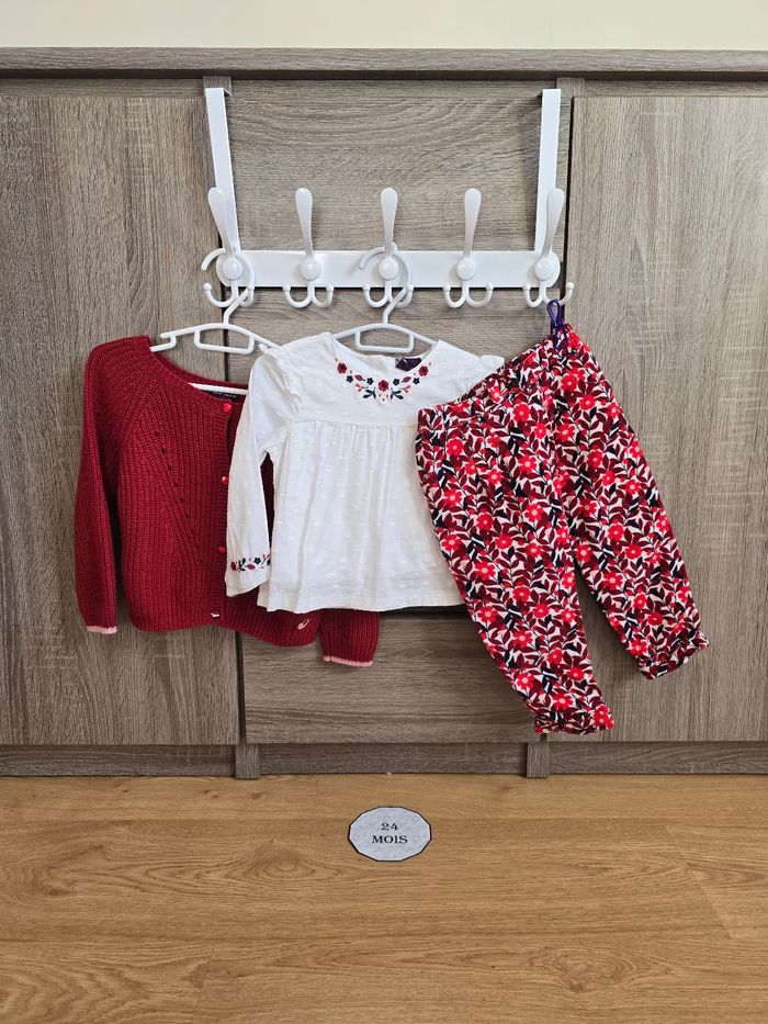 Lien direct vers les tailles équivalentes dans mon dressing : #fdhsarah24mois #fdhsarahSGMJ 📜 Ensemble comprenant : - Un gilet/cardigan en maille tricoté rouge bordeaux. Ref : - Blouse manches longues blanc cassé/écru avec broderies motifs floraux rouges et marines au niveau de l'encolure et sur le bas des manches. Ref : DAORELIA - Pantalon imprimé floral intégrée avec des fleurs rouges sur un fond bleu marine. Ref : DAORIANE Collection : Un ski d’fond fond fond Taille 📏 : 24 mois 86 cm État 🔍 : Très bon état Marque 🏷️ : Sergent Major Je suis disponible pour toutes questions ou photos supplémentaires. 📦 L’envoi se fait le plus rapidement possible Bon Shopping #fdhxxx24xxx