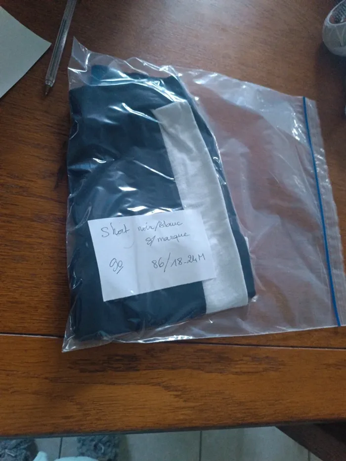 Short noir blanc sans marque 86-18/24M. 60% coton, 40% polyester. TBE