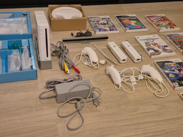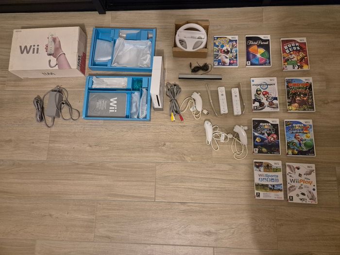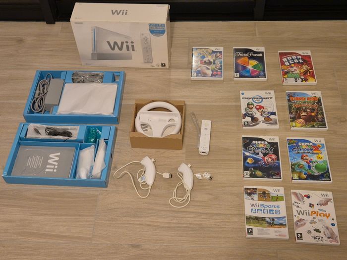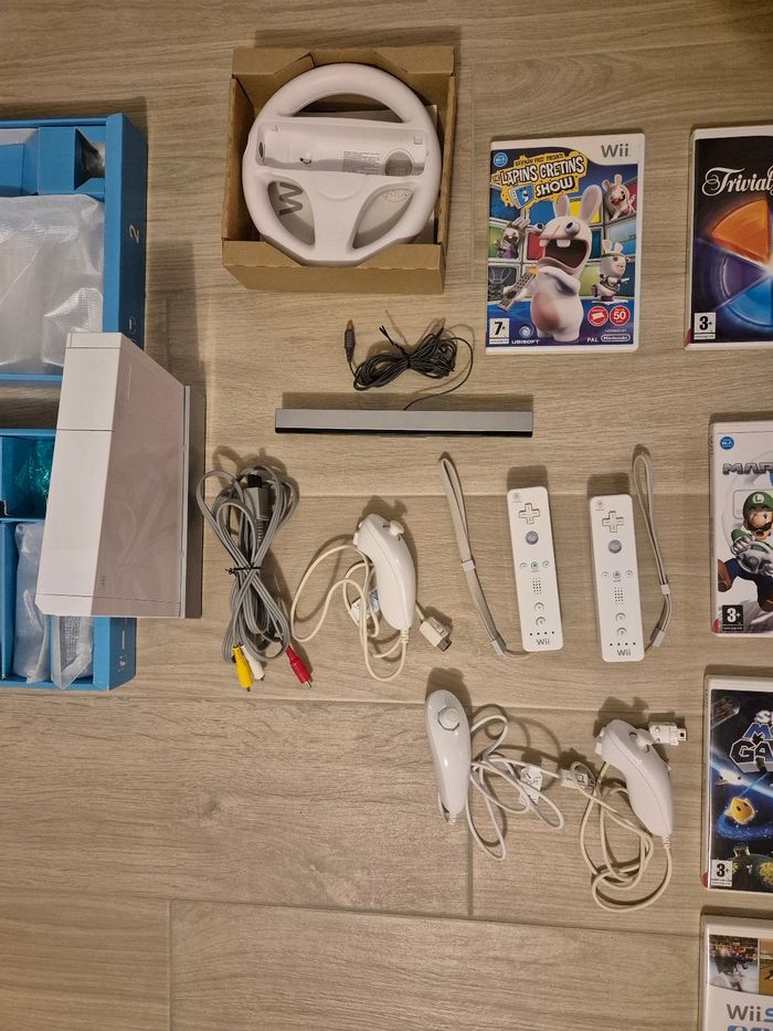 Wii dans sa boîte d'origine 2 manettes (dont nunchuck) Volant 9 jeux