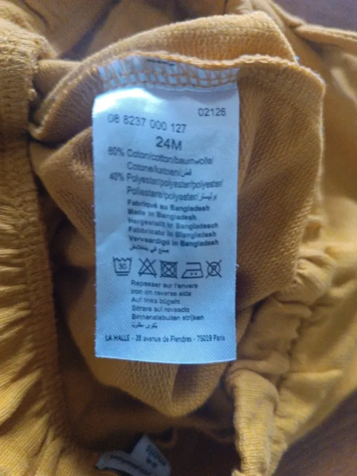 Short moutarde Pat & Ripaton 86-18/24M. 60% coton, 40% polyester. TBE