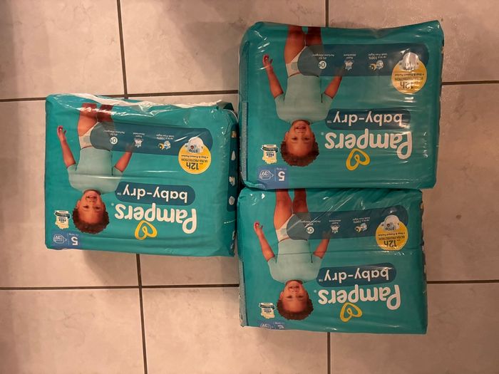 3 paquets de 39 couches Pampers Baby Dry Taille 5