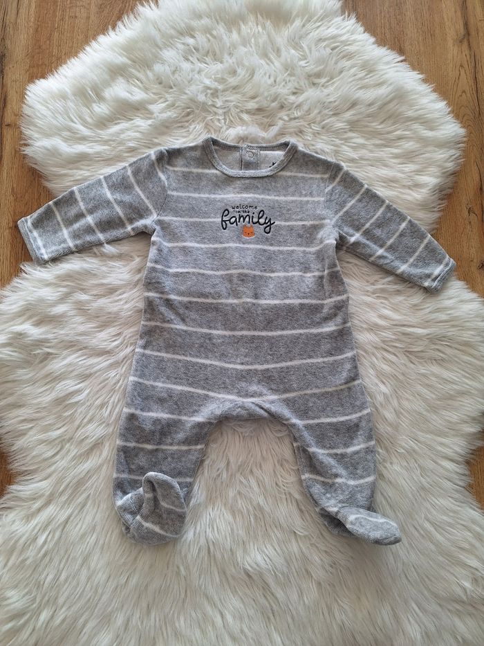 Pyjama velours 1 pièce chat Kiabi 3 mois 56-62 cm 6 kg - photo numéro 1