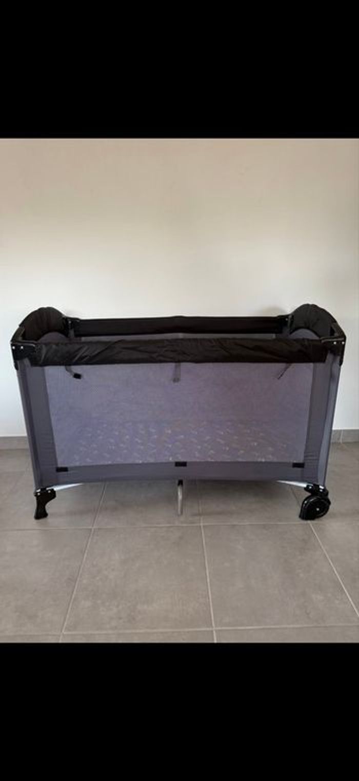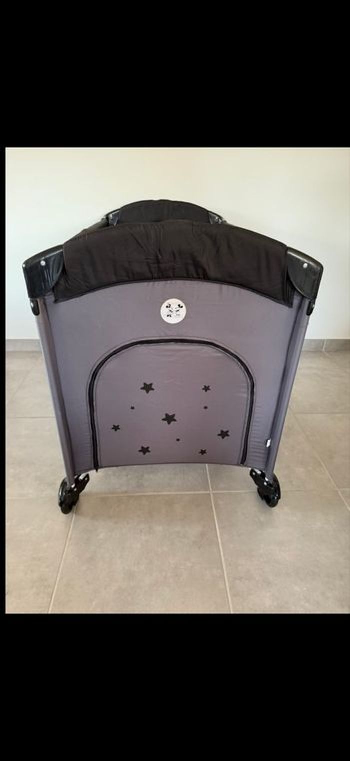 Ce lit parapluie particulièrement compact possède tous les arguments pour séduire les parents les plus exigeants ! Les plus produit : • Ses larges rideaux latéraux et repliables faciliteront le sommeil de bébé. • Ses grandes roues vous permettront de le déplacer avec une extrême facilité. • Il roule presque partout aussi bien en position dépliée qu'en position pliée dans son sac de rangement. • Équipé de garde-boue pour vous permettre de le déplacer sans encombre de la voiture au domicile. • Equipé d'une ouverture latérale par zip. Design : • Ses coloris chics et classiques et ses coins latéraux courbes lui confèrent un look d'une grande élégance. • Finitions tissu polyester Conforme aux exigences de sécurité. Caractéristiques : • Conforme aux exigences de sécurité • Dimensions du matelas : 120 x 60 x 2 cm • Poids du lit : 10 kg