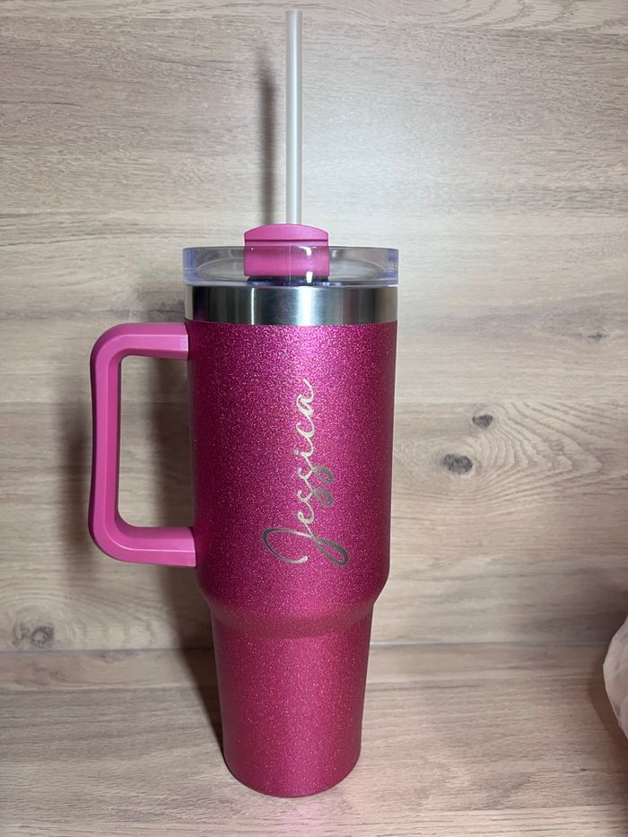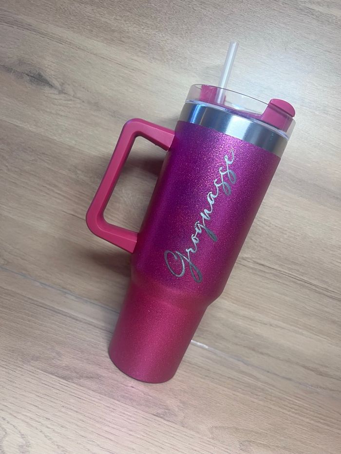 Grande gourde à paillettes avec anses personnalisée gravée au laser dans notre atelier dans le sud de la France N’hésitez pas à m’envoyer un message pour plus d’informations Coloris encore disponibles : argent et noir