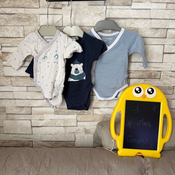 Lots de bodies manches longues croisés et non croisés Marques diverses Taille 1 mois Très bon état général #taille1mois #vetementgarçon #tresbonetat #bodies #bodiesmancheslongues