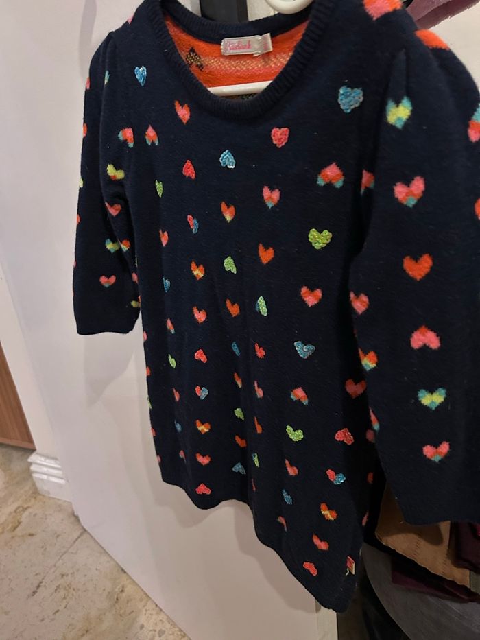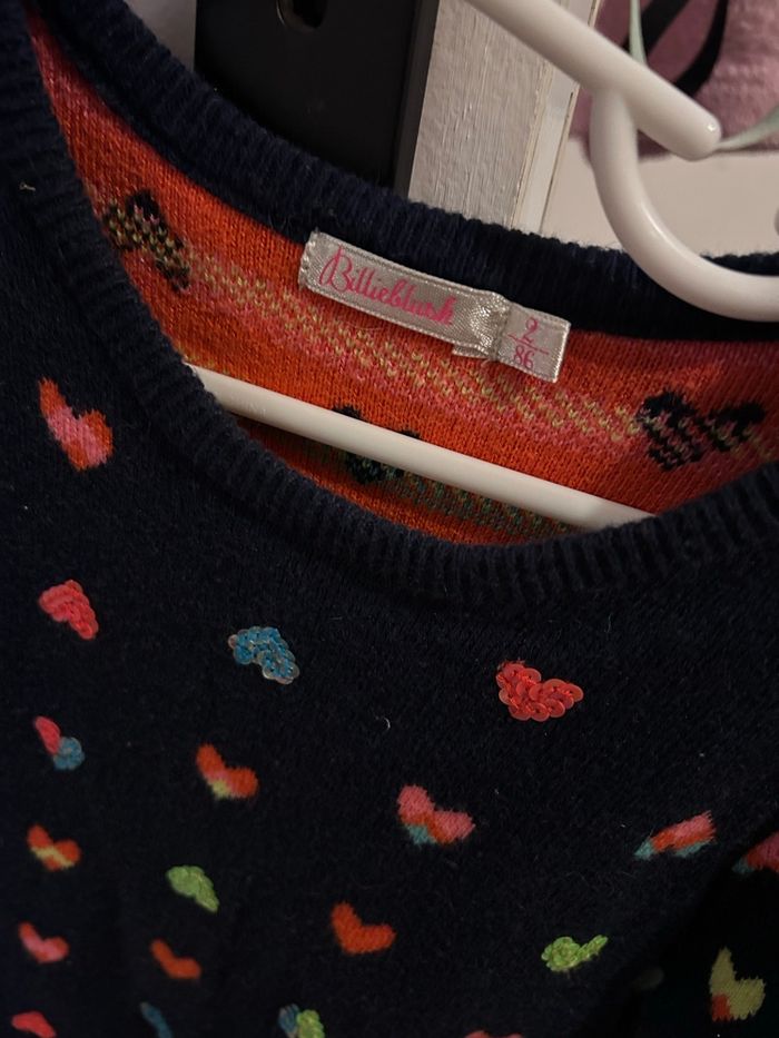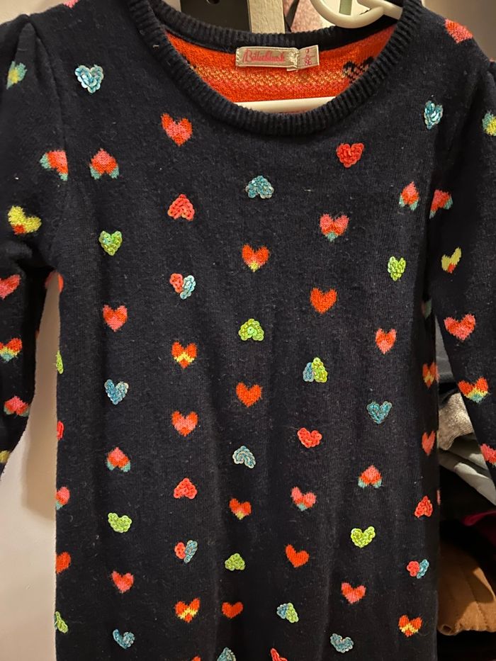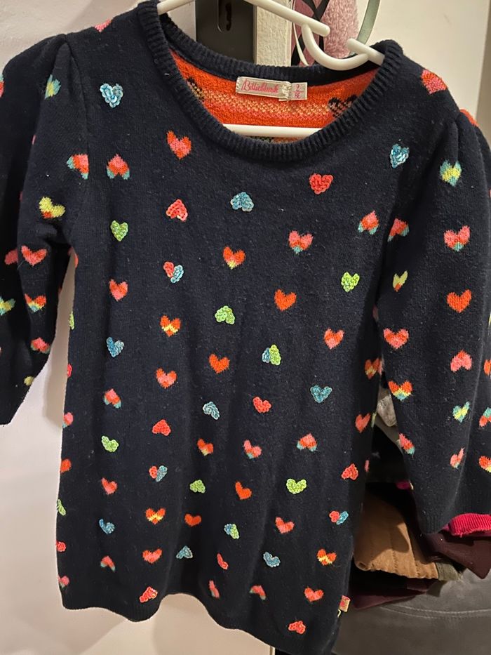 Marque BillieBlush Taille 2 ans Couleur bleu marine avec des petits cœurs Robe en laine pour fille Manches longues En très bon état général