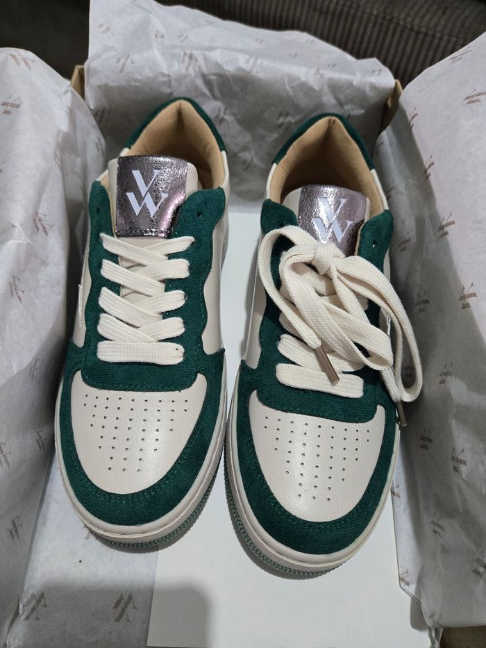 Baskets Vanessa Wu Célestine – Taille 36 Neuves, jamais portées. Taille : 36. Coloris : vert avec touches crème. État impeccable, aucun défaut. Vendues avec la boîte d’origine. Modèle tendance et confortable, facile à porter au quotidien.