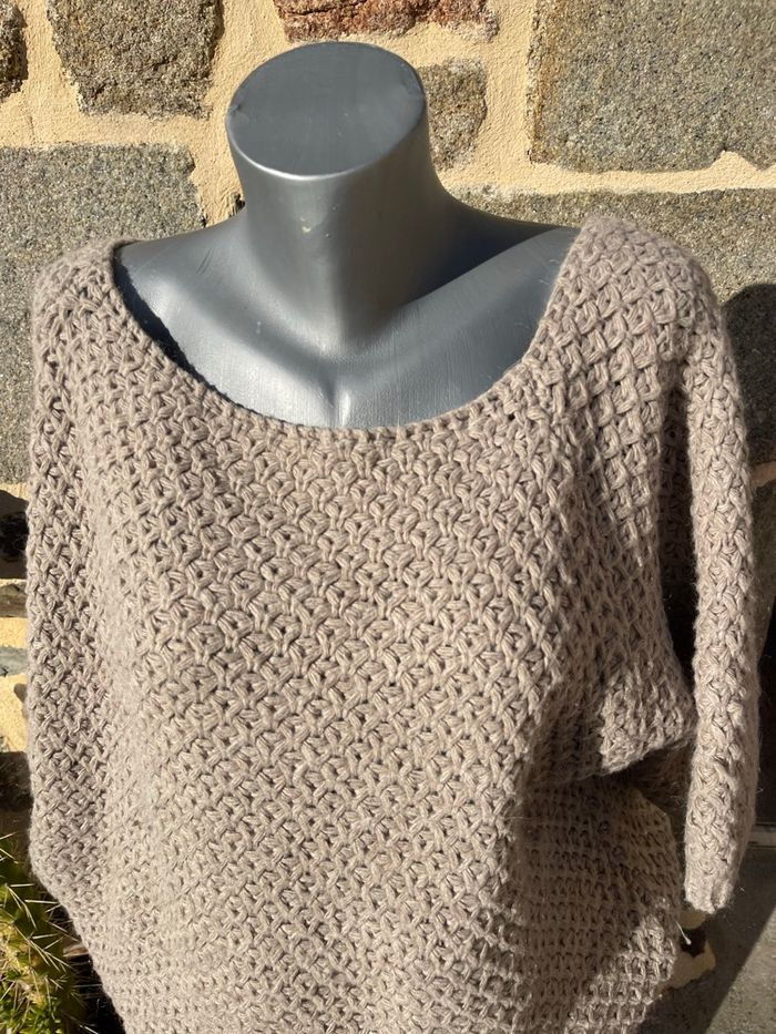 Pull en maille beige sable Taille unique Acrylique 60% Laine 20% Mohair 20% Coupe loose manche 3/4 Très bonne état