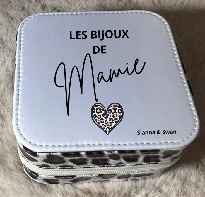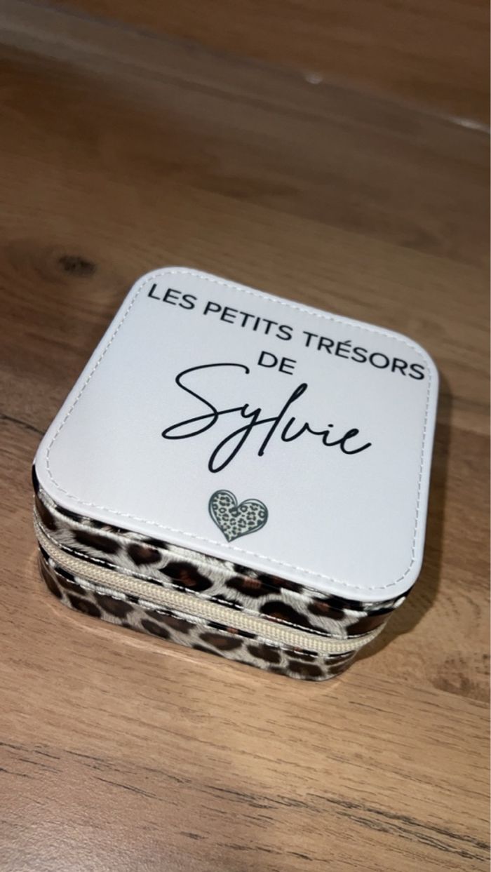 Boîte à bijoux personnalisée Plusieurs coloris au choix : noir, rose, beige ou léopard Vous pouvez la personnaliser comme vous le souhaitez, pour cela n’hésitez pas à m’envoyer un message, je vous préparerai un visuel