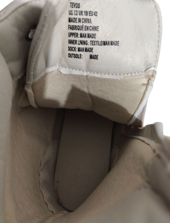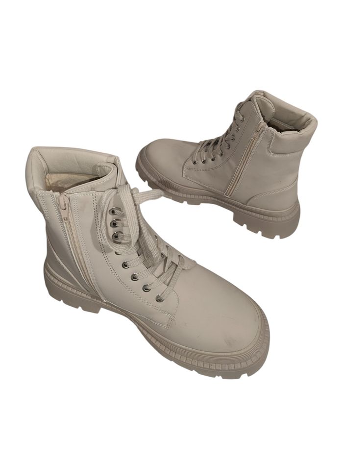 ──────────────────────── CARACTÉRISTIQUES PRINCIPALES ──────────────────────── Marque : JUSTFAB Modèle : TEVOS (bottines montantes) Pointure : 43 EU / 12 US / 10 UK – grande taille femme Couleur : beige / crème (neutre, facile à assortir) Matière : synthétique (man-made) intérieur & extérieur Hauteur du talon : ± 4 cm (≈ 1,6 inch) Origine : fabriquées en Chine ──────────────────────── ÉTAT & DÉTAILS ──────────────────────── Portées une seule fois : semelles et empeignes quasi neuves (voir photos) Aucune déchirure, couture lâche ou tache majeure Intérieur propre, légères traces d’essayage uniquement Idéales pour un look tendance, casual chic ou urbain – confort assuré grâce au talon bas de 4 cm