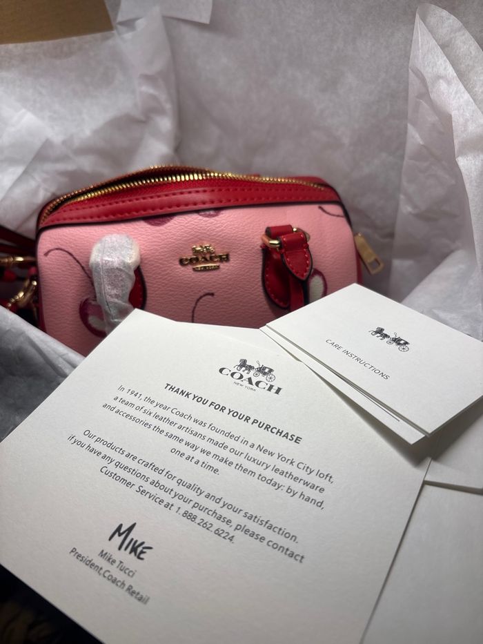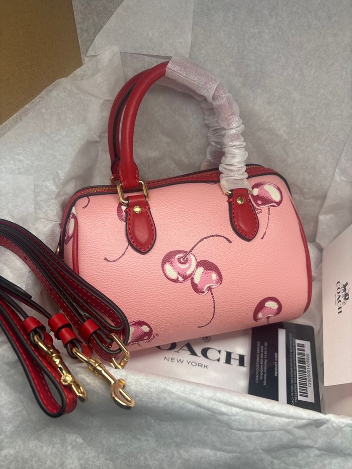 Le mini sac bandoulière Rowan avec imprimé cerise de Coach est un accessoire compact, stylé et très tendance qui combine élégance et touche ludique fruitée en édition spéciale : un imprimé cerises multicolore sur une base argentée brillante  👜 Design & style • Format mini et féminin parfait pour les sorties, soirées ou look casual chic • Imprimé de cerises colorées qui donne une touche fun et originale • Silhouette inspirée des sacs à bandoulière classiques, mais plus compacte et moderne  📏 Portabilité • Bandoulière amovible pour porter à l’épaule ou en crossbody selon la tenue et l’occasion • Format très pratique pour transporter l’essentiel sans être encombré  🧵 Matériaux & qualité • Confection haut de gamme typique de Coach (toile enduite et détails en cuir selon les versions) • Doublure intérieure en tissu, fermeture zippée sécurisée et finitions propres et résistantes  🎒 Contenu typique Ce type de mini sac Rowan peut généralement contenir : • Un petit portefeuille • Smartphone • Clés • Quelques essentiels comme rouge à lèvres ou cartes C’est un mini sac “petit mais pratique” pour les essentiels du quotidien Prix : 899 euros Pas serieux s’abstenir merci Cordialement.