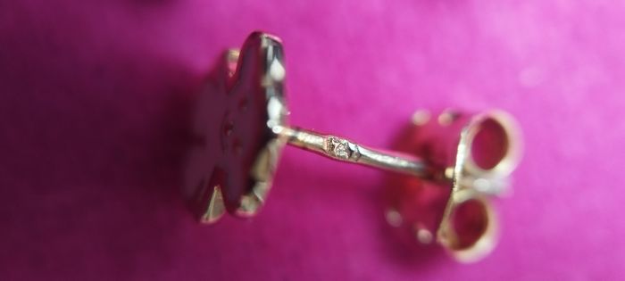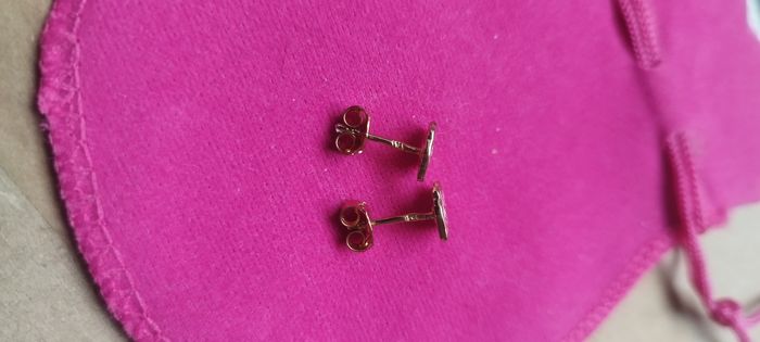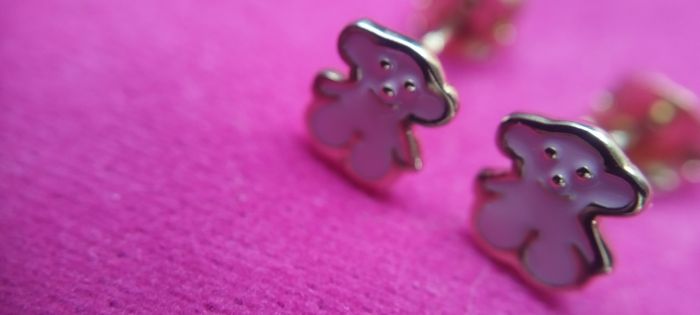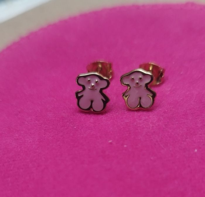 Petite boucles d' oreilles plaqué or 18k poinçon visible Petit nounours rose Parfait état , fermoir aussi Peut facilement convenir pour enfant