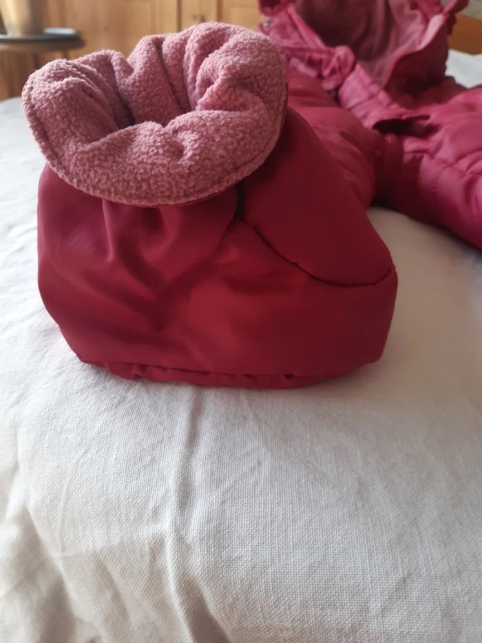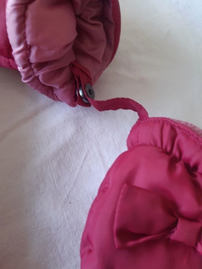 Impeccable Petits pieds et mains bien au chaud impossible de perdre ces éléments système de sécurité antiperte et amovibles si vous désirez les retirer. Capuche, double fermeture zippée et pressions. Pas de défaut