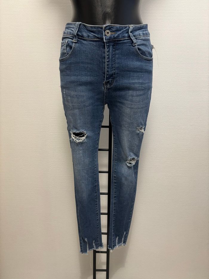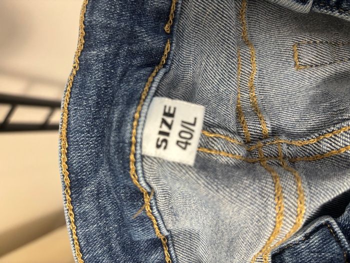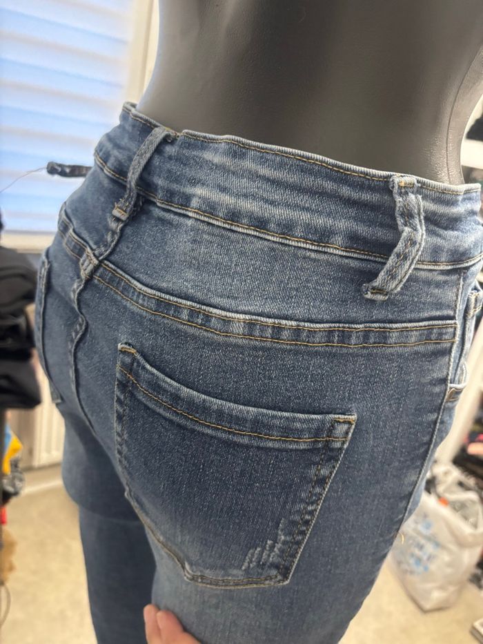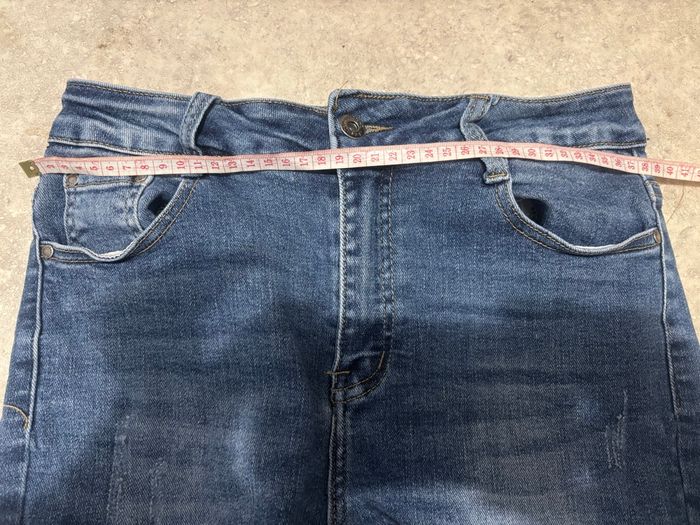 Jeans skinny stretch taille L 40 mais taille plus petit bon pour un M 38 voir mesure sur photo peu porté ⚠️ Juste un défaut un des passants est décousu voir photo 3