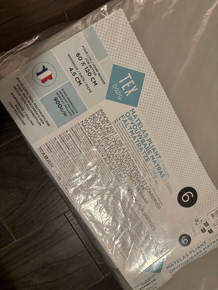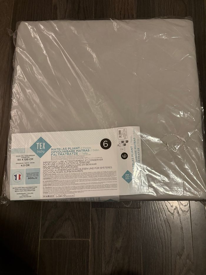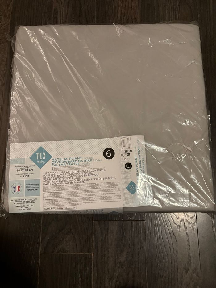 Matelas pliant TeX Dès la naissance 60x120 4,5 cms d épaisseur Polyester Couleur gris Emballé dans son emballage d’origine Neuf jamais utiliser