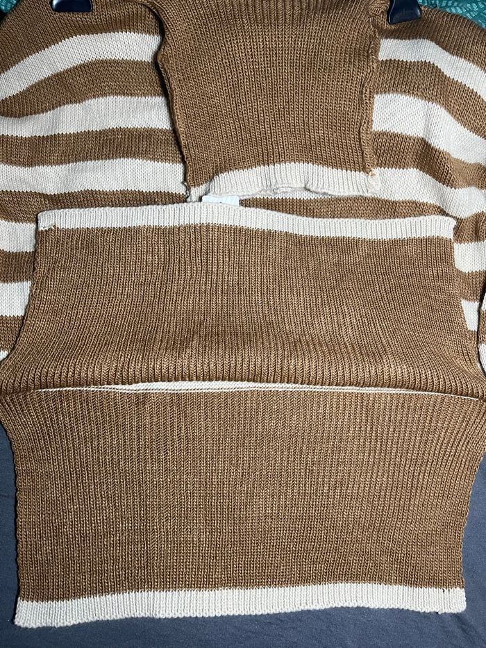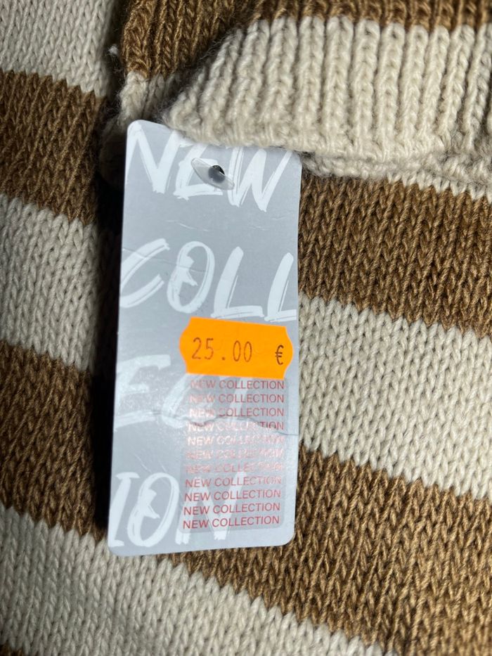Pull femme Marque New collection Couleur marron,beige Taille L Longueur 62cm Largeur 60cm Neuf avec étiquette