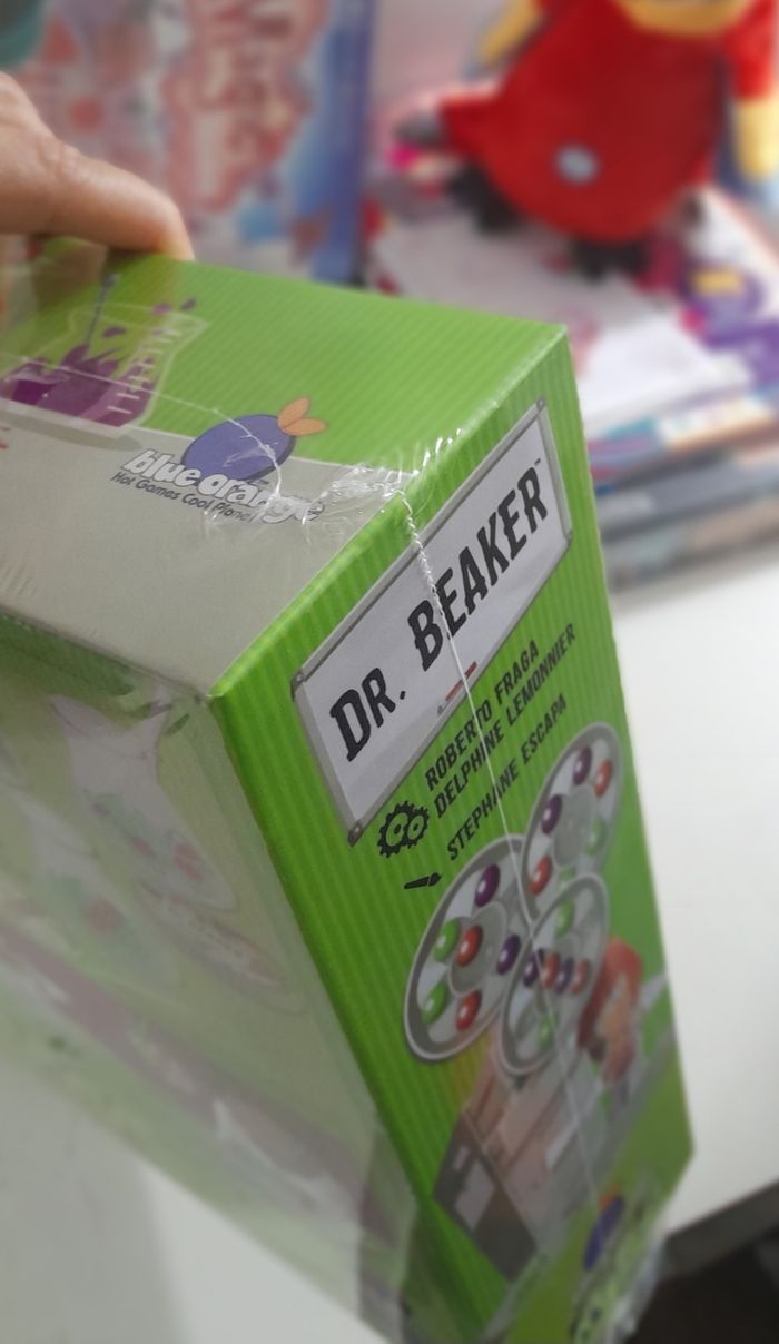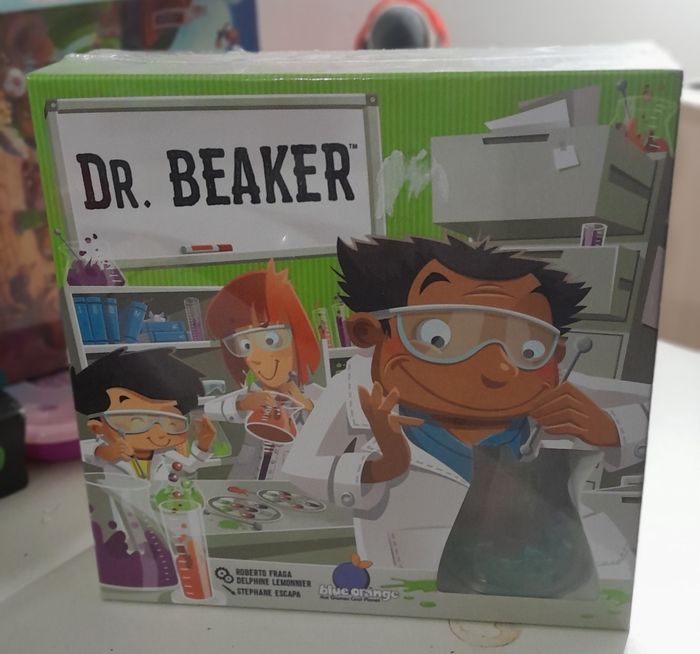 Docteur Beaker est un jeu de logique, d'adresse et de rapidité pour agiter les neurones ! Chaque joueur place ses 6 billes dans sa fiole, en faisant en sorte que les molécules soient placées dans les compartiments. Puis on retourne une carte objectif qui montre une disposition de billes dans la fiole. Tous les joueurs en même temps essayent de disposer leurs billes comme sur le modèle, en utilisant le bâtonnet et en se servant de la partie centrale comme zone de transition. Le premier joueur qui réalise la bonne combinaison annonce "Eurêka" et gagne la carte. Dans la variante jeu en équipe le laborantin regarde la carte et donne les instructions au chimiste qui effectue les manipulations, ce n'est pas toujours facile… Élément neuf, sous blister - Packaging sans