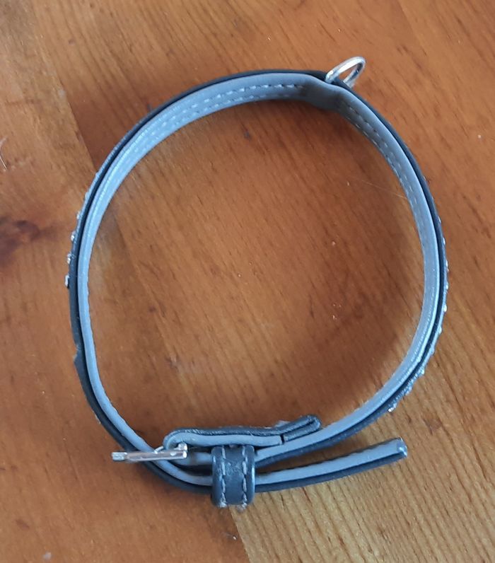Collier gris avec des strass, pour petit chien peu utilisé longueur totale : 35 cm environ 8.5 cm à 10 cm de tour de cou