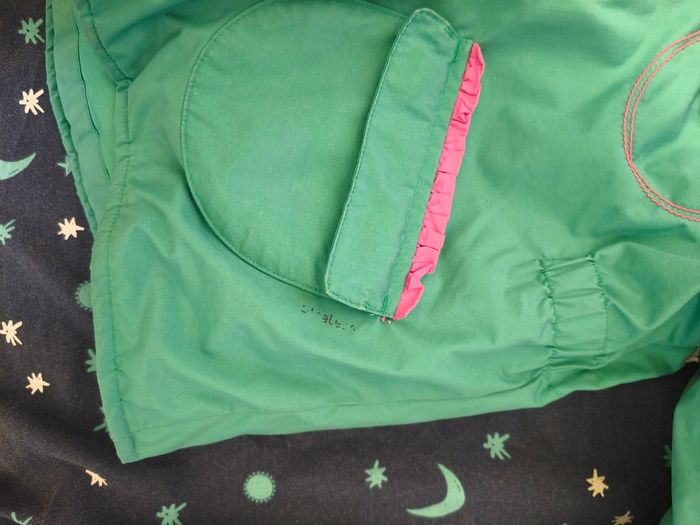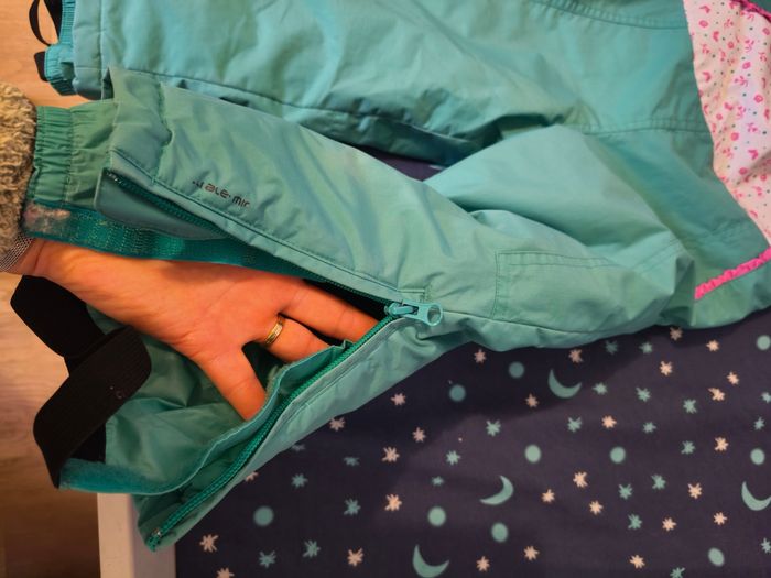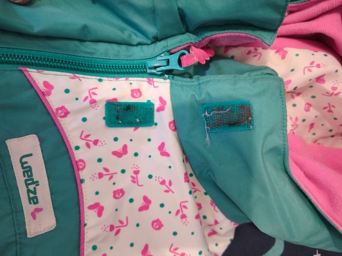 Ensemble manteau+combinaison de ski fille 3ans marque wed'ze couleur verte et rose Couleur légèrement passée, quelques taches à peine visible (sauf celle a côté de la poche ) voir les photos La combinaison s'ouvre sur le côté (voir photo) Reste néanmoins en très bon état pas de trous ni de déchirure Je peux déposer les colis rapidement surtout en semaine